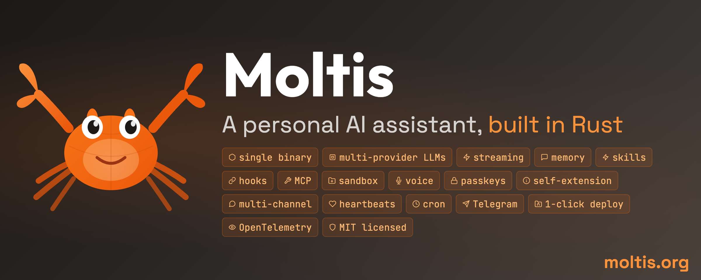Moltis is about owning your AI assistant. Not outsourcing core control. Not treating safety as an afterthought. Not locking the future behind a hosted box. Just a fast, secure, extensible AI assistant you can run yourself.